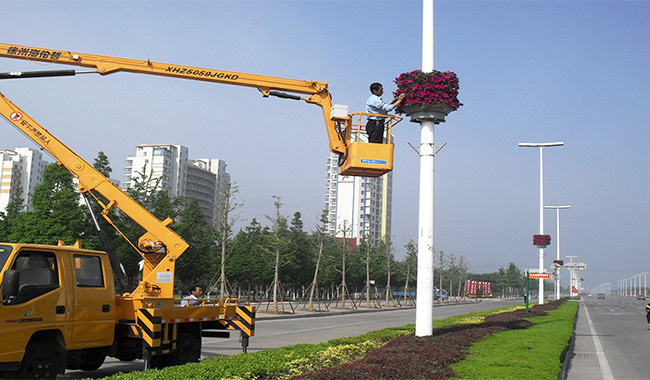 • 輕型伸縮臂高空車更換照明路燈施工現場,效率高